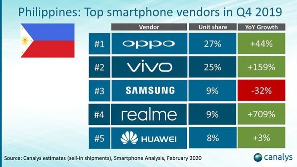 realme Philippines grew 709 percent year-on-year, claiming a top spot in a study by Canalys