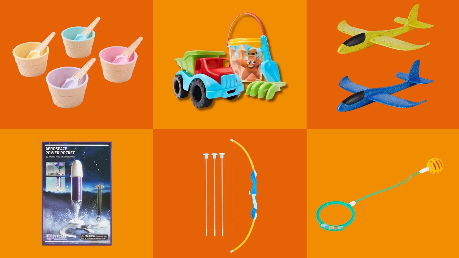 Ice Cream Bowl and Spoon Set (₱370), Truck Adventure Set (₱290), Foam Glider (₱160), Aerospace Power Rocket (₱840), Archery Set (₱260), and Skip Ball (₱260) – Anko