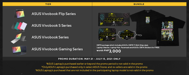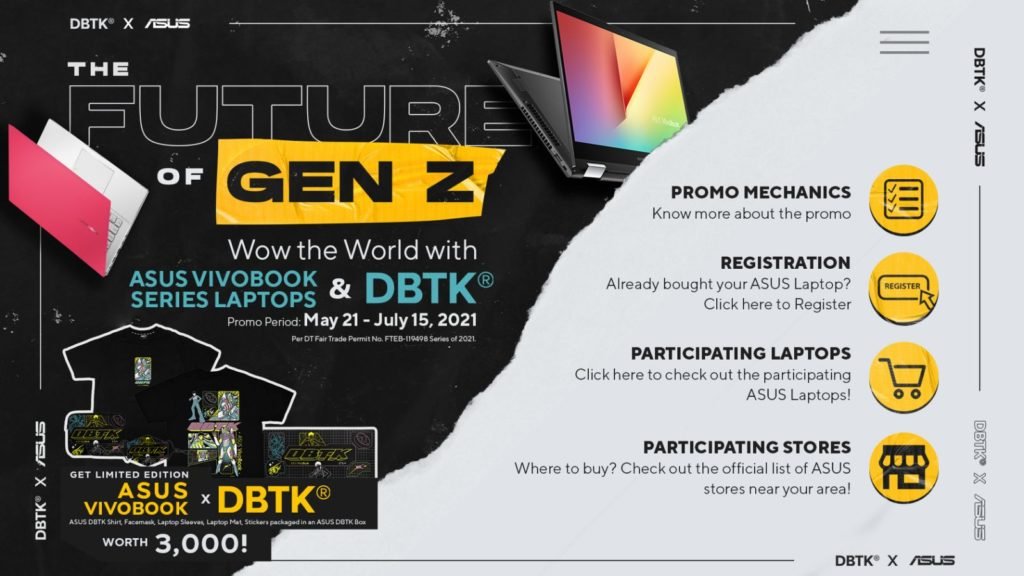 The Future of Gen Z is here! The ASUS VivoBook series has collaborated with Don’t Blame The Kids Apparel Co. Starting today until July 15, 2021, the ASUS VivoBook X DBTK collab will allow every customer who purchases select ASUS VivoBook laptops to receive a free limited edition DBTK merchandise worth Php3-thousand. Said laptops would include VivoBook Flip, VivoBook S, VivoBook, and VivoBook Gaming. The merchandise, on the other hand, will include a shirt, laptop mat, laptop sleeve, face mask, and a sticker packed with ASUS DBTK Box.