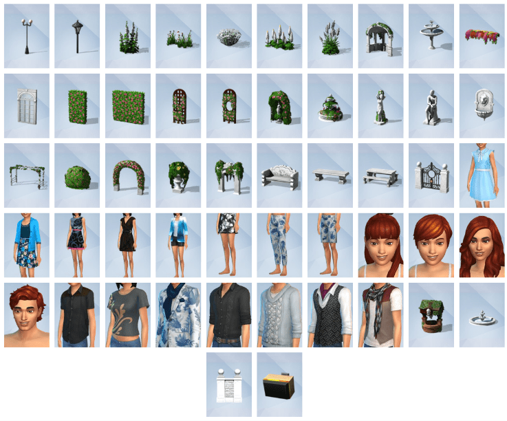 What are the things you can make with the Romantic Garden stuff? Create a Victorian-inspired garden, make wishes at the wishing well, play in the water fountain, and express your love for floral prints—all included in this free stuff pack!
