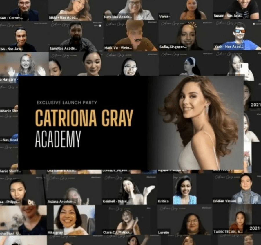 Nevertheless, the party’s themed is awesome as it encompasses Catriona’s background. A Cat Gray-themed zoom background for all the participants with a crown figure on every people. Indeed, a Kings and Queens party. Some snippets of the behind-the-scene of Nas Academy shoot with Cat were also revealed at the party. Another fun fact, Catriona herself did her own makeup for the shoot.