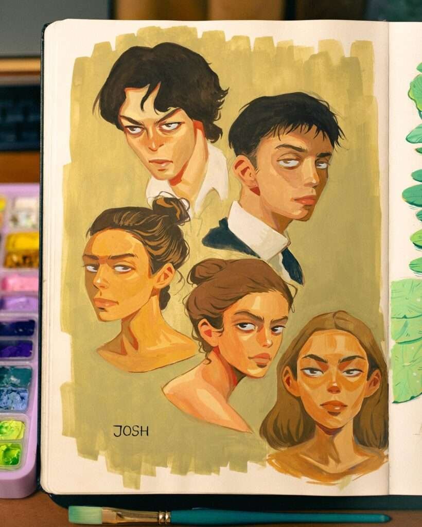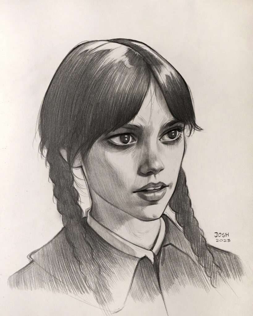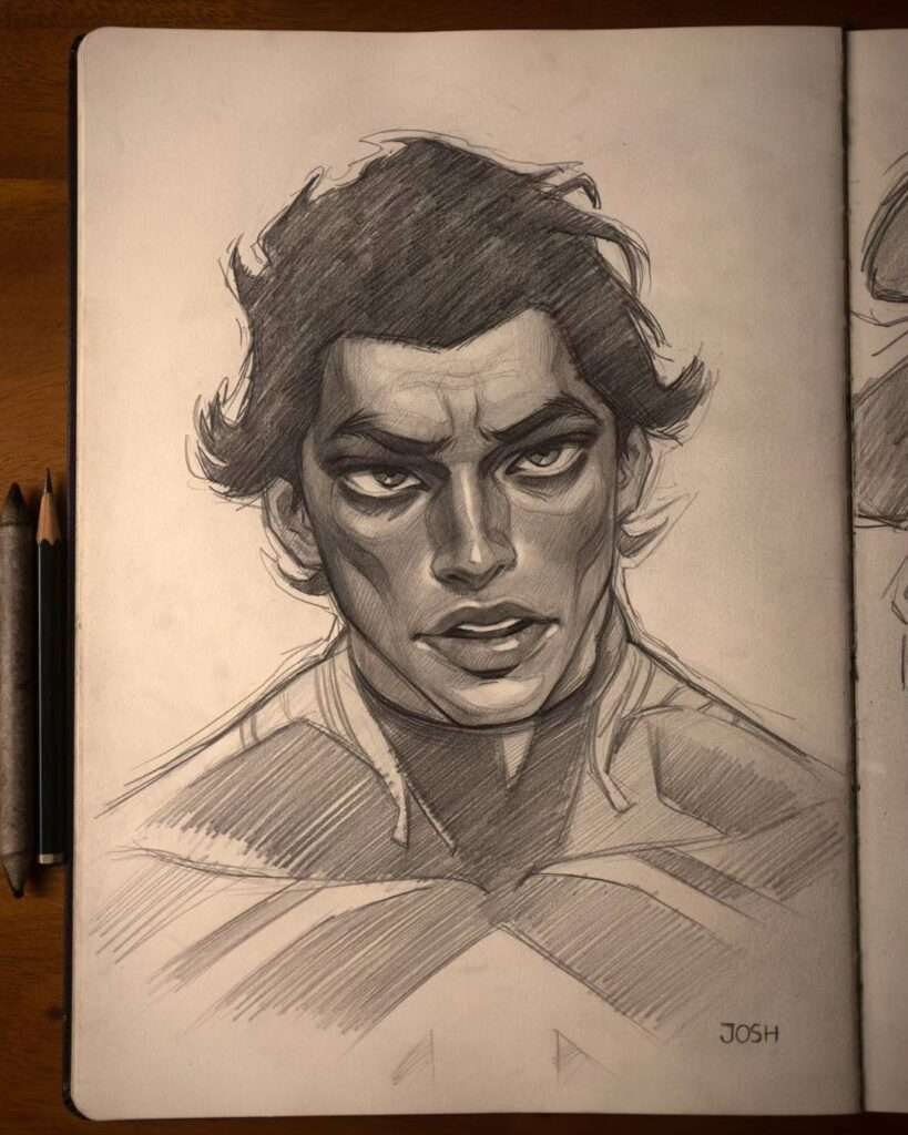 Watching Josh’s videos on TikTok and YouTube is a whole a visual journey, where the transformation from sketch to masterpiece unfolds in mere seconds. Josh’s TikTok videos showcase his impeccable skill in sketching his stylized portraits, capturing the process of his creations in a simple yet impactful way.
