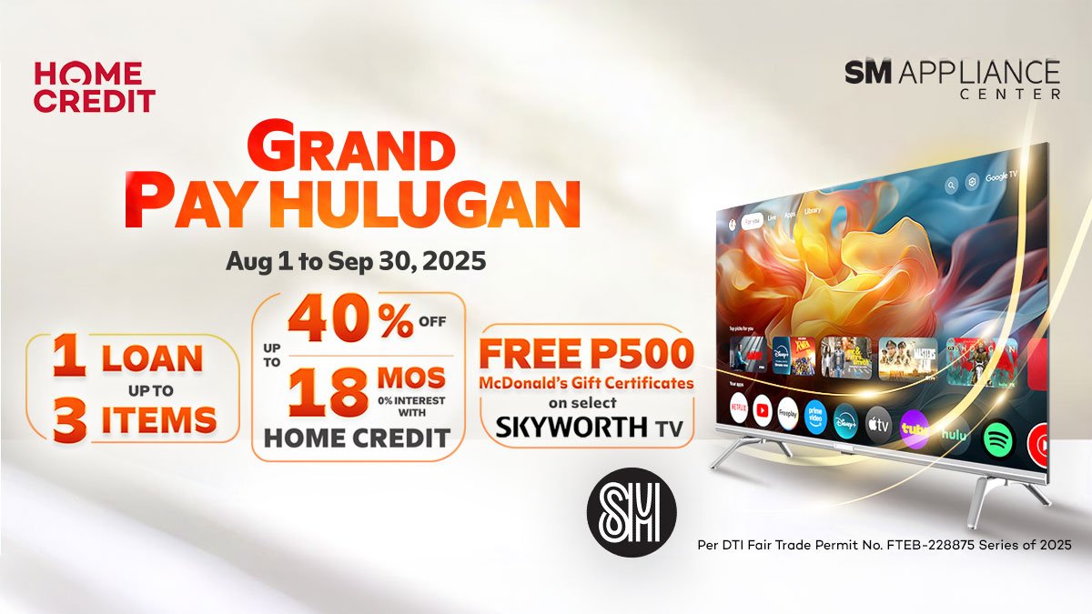 SM Appliance Center teams up once again with Home Credit Philippines, the country’s leading consumer finance provider, to relaunch the highly anticipated Grand Pay Hulugan—an exclusive sale for Home Credit customers that makes owning your dream appliances easier and more affordable than ever.