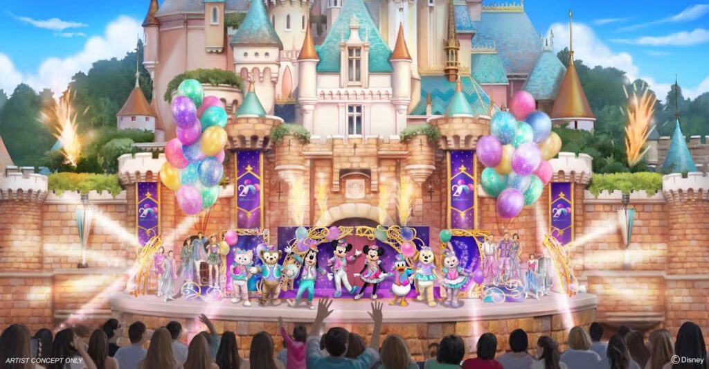 Guests will be welcomed by Mickey and Friends, Duffy and Friends and Disney princesses in a brand-new anniversary-only castle stage show! This daytime extravaganza brings together beloved Disney friends for a high-energy, fun-filled party experience in front of the Castle of Magical Dreams.