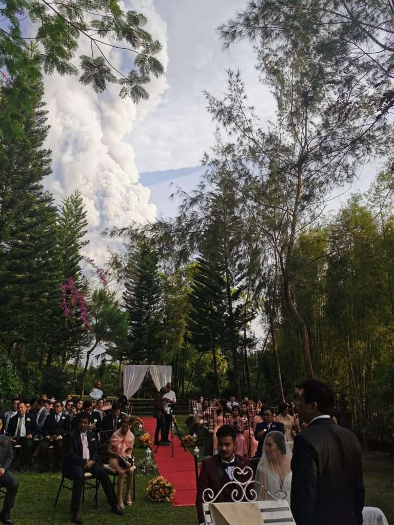 Nothing in this world could stop a wedding vow even a volcanic eruption for every sincere and lovely couple. Giant ash columns from Taal Volcano’s eruption did not stop these two couples from tying the knot on Sunday.