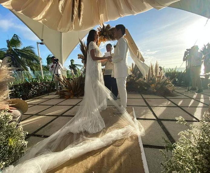 They held the wedding during sundown, beneath the golden tent they acquired. Aside from that, they filled the place with flowers, plants and frames with their astonishing pre-nuptial photos. HomeWorkZ Music announced the news on Instagram, posting a photo of the couple’s union.