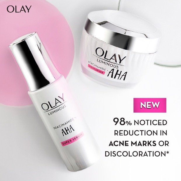 Olay’s scientifically-backed technology uses seven types of AHA. The most promising being the lactic acids used in Olay Luminous Niacinamide+ AHA Super Serum and Cream.