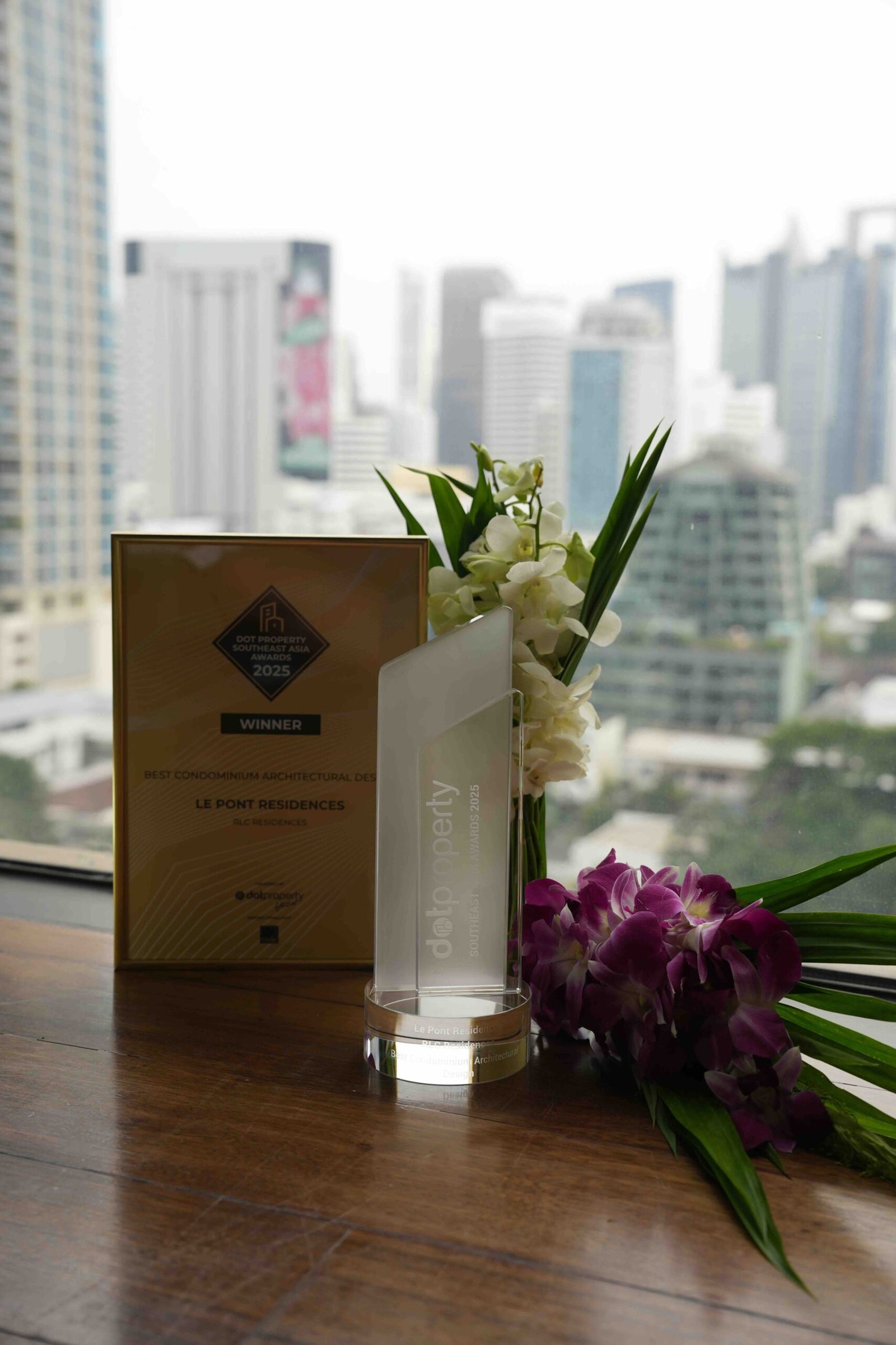A symbol of architectural excellence—the certificate and plaque awarded to Le Pont Residences at the DOT Property Southeast Asia Awards in Bangkok, Thailand, this December.