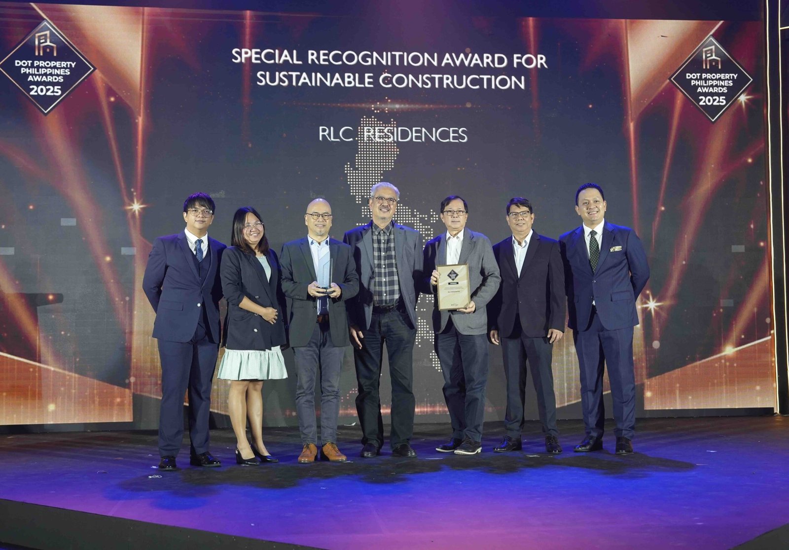 The RLC Residences team receives the Special Recognition Award for Sustainable Construction at the DOT Property Philippines Awards, highlighting its continued focus on sustainability across its developments.