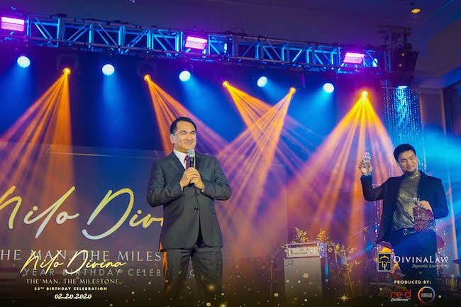 Divina Law patriarch Atty. Nilo Divina celebrated his 55th birthday in a modern art deco party last Thursday, February 20 at EDSA Shangri-La. The event was attended by family, friends, his dynamic group of lawyers, and clients — gathered together to witness his legacy as a family man, as a lawyer, and as the head of one of the top law firms in the Philippines — Divina Law.