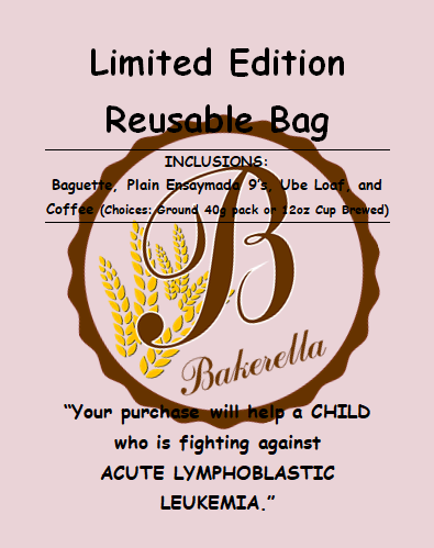 For only P249, you can get a reusable bag with some tasty pastries in it and the opportunity to help a 6-year-old girl named Kaith fighting against Acute Lymphoblastic Leukemia via this kind initiative by Pasig-based bakery Bakerella.