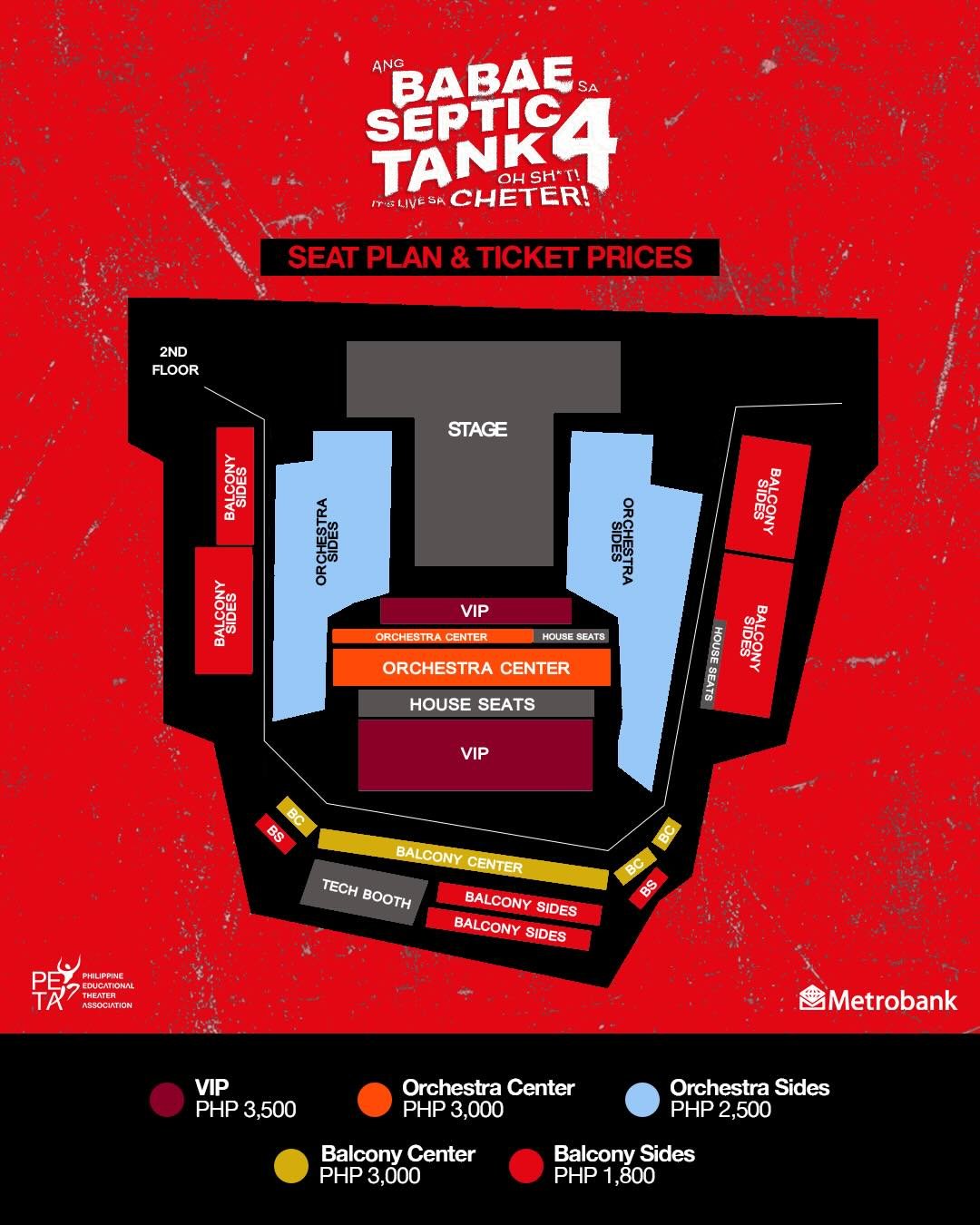 Ticket prices are P3,500 (VIP), P3,000 (Orchestra and Balcony Center), P2,500 (Orchestra Side), and P1,800 (Balcony Side).