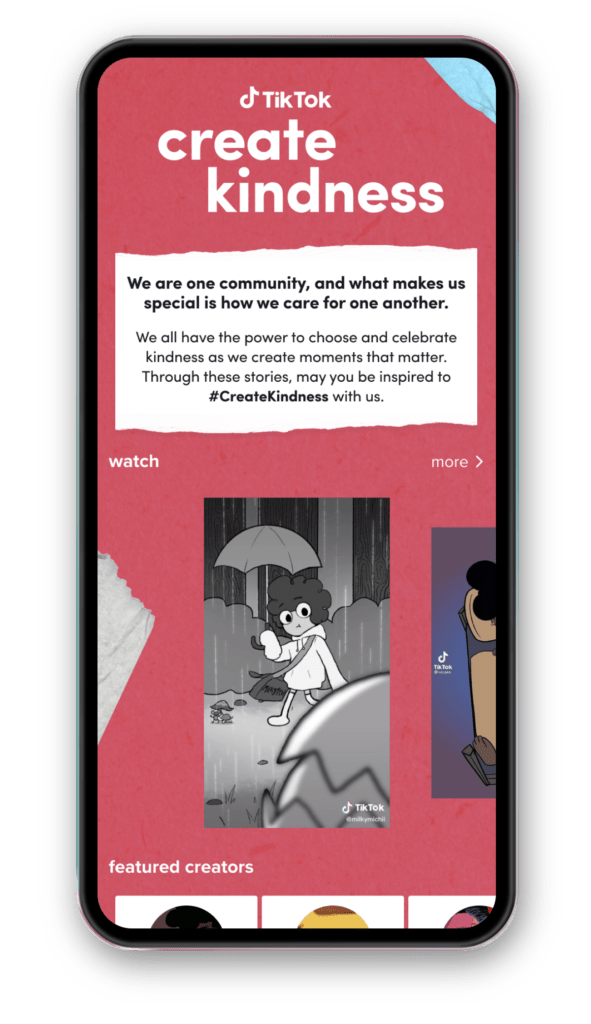 In addition to these videos, we invite our community to participate in the #CreateKindness hashtag challenge by creating TikTok videos that share the heart-warming moments and comments that inspire you to spread kindness. Through the #CreateKindness campaign, we invite our community to choose, celebrate, and create kindness with one another, every day.