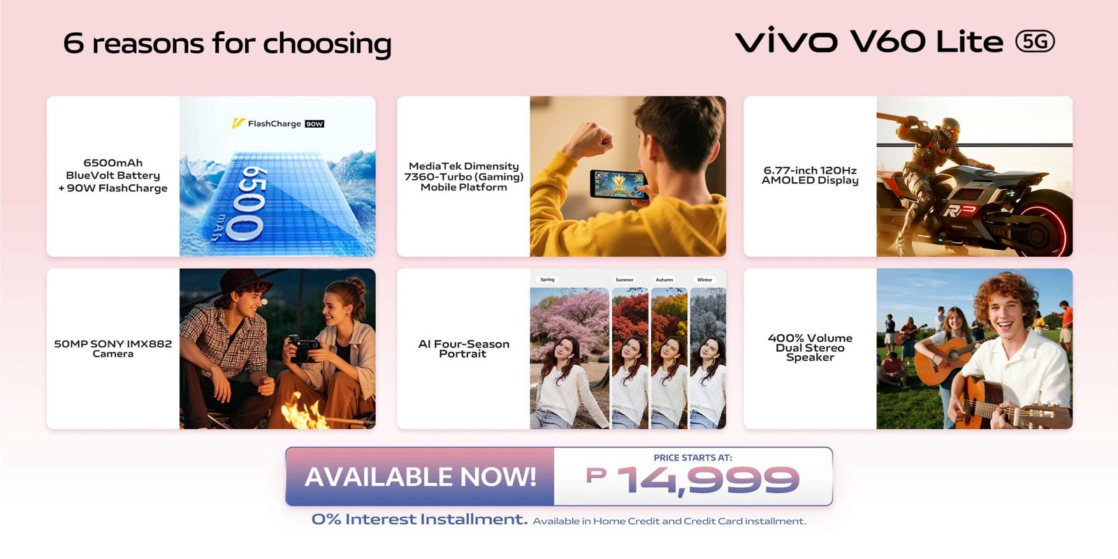 - V60 Lite 4G (8GB + 256GB): Php 14,999