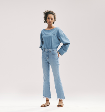 Available on February, the High Skinny Flare is made with thick but stretchy Kaihara denim with an authentic vintage texture. It is flared from knee to hem and has a high-rise style that makes the legs look longer.